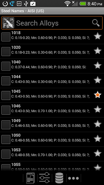 ブックマークのエクスポート/インポートを含む合金のブックマーク、標準、テクノロジー、メーカー、国、最近閲覧されたブックマーク、カスタム検索フィルターを含む複数の基準によるリストをサポートしています。
